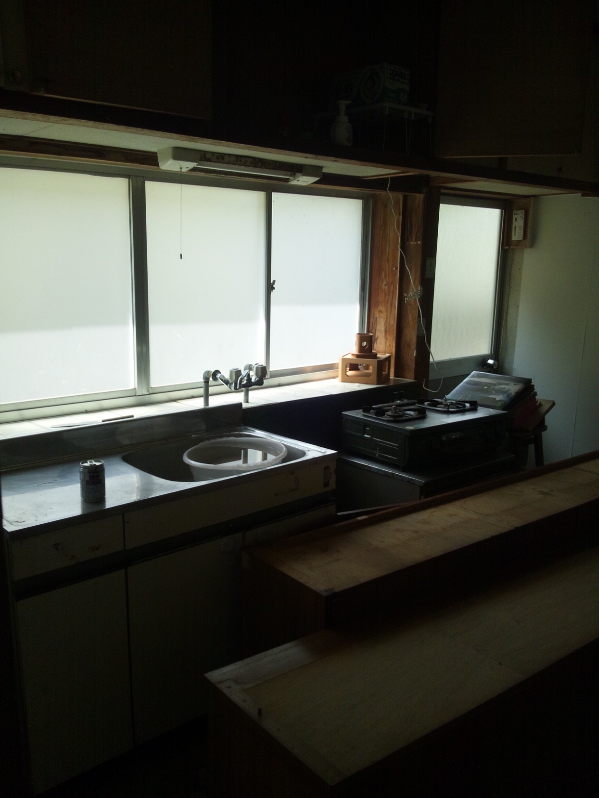 今年は新盆を迎えるご家庭が多い中、山田町ゾンタハウスは暑さにも負けずに開設準備まっただ中です。 安全性や使い勝手のことを考えて、ガラス棚のガラスを全て取り除きました。 ここにスタッフ特製の畳が敷かれる予定です。 台所のシンクも、スタッフの自宅から提供されることになっています。 このHPの記事を書いているのは東京のスタッフですが、東京では本当に何もできず、はがゆい気持ちです。