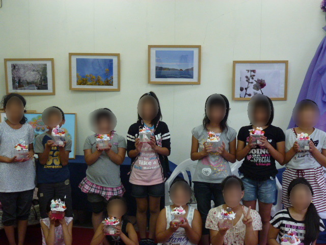 たくさんの小学生女子に参加して頂きました。デコるだけではなくアイスのパーツ作りも行いました。自分の好きなように思いぞんぶんデコできて楽しそうでした。きれいなもの、かわいいものを見たり感じたりと被災地の子供たちにはなかなかできない非日常的な分野を楽しんでもらえたのではないでしょうか。