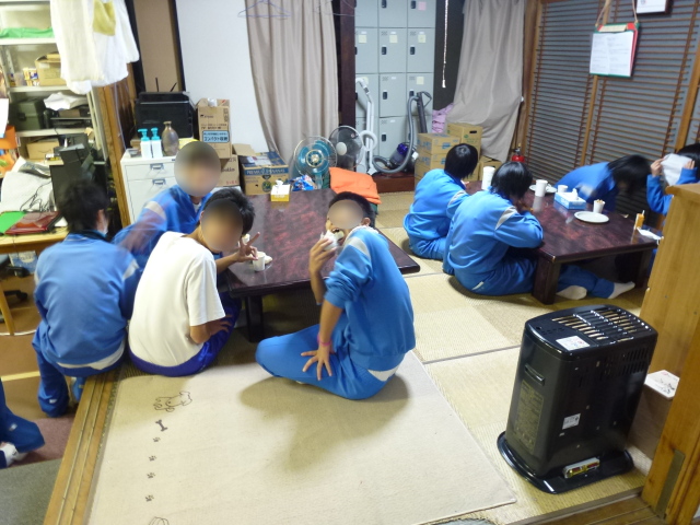 みんな仲良く美味しそうな笑顔で食べています