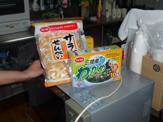 コープ東京さんから頂いた「わかめスープ」を飲みながら頑張っています